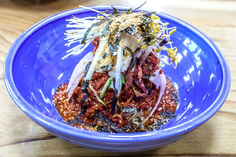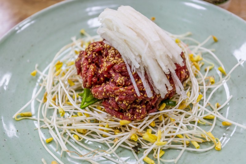 봉평메밀미가연에 다녀왔습니다 ! 흑백요리사로 유명한 에드워드리 쉐프가 맛있게 먹은집으로... 맛있는집은 역시 알아보고 찾아오게 되어있나봐요 메밀싹이 함께 나오는 몽평메밀미가연 육회!!!! 메밀싹...