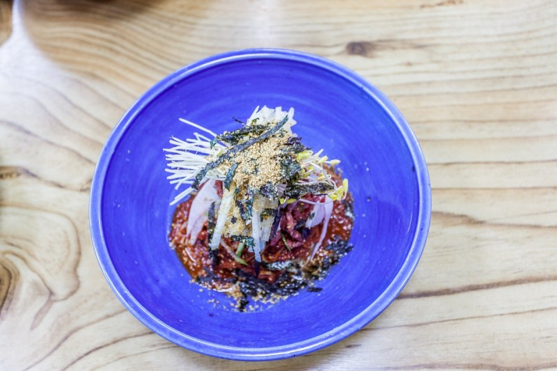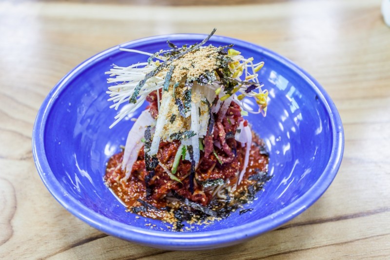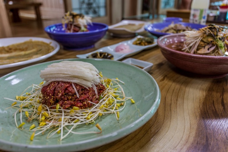 봉평메밀미가연에 다녀왔습니다 ! 흑백요리사로 유명한 에드워드리 쉐프가 맛있게 먹은집으로... 맛있는집은 역시 알아보고 찾아오게 되어있나봐요 메밀싹이 함께 나오는 몽평메밀미가연 육회!!!! 메밀싹...
